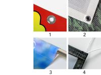 4. Només per a pancartes tèxtils petites: vora d'1 cm amb cordó doble a cada  cantonada.